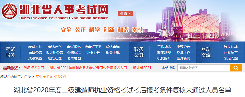 湖北2020年二級建造師考試考后報考條件復(fù)核未通過人員名單