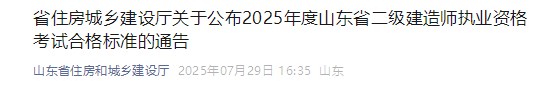 山東省住房和城鄉(xiāng)建設(shè)廳發(fā)布關(guān)于公布2025年度山東省二級(jí)建造師執(zhí)業(yè)資格考試合格標(biāo)準(zhǔn)的通告,具體信息如下: