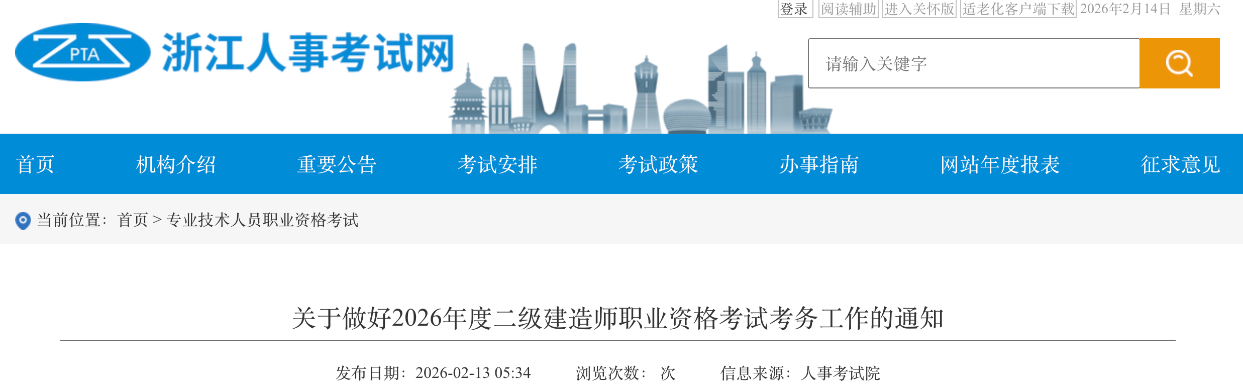 浙江發(fā)布關(guān)于做好2026年度二級建造師職業(yè)資格考試考務(wù)工作的通知