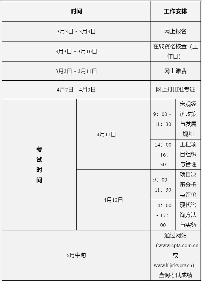 黑龍江2026年咨詢工程師(投資)職業(yè)資格考試工作安排