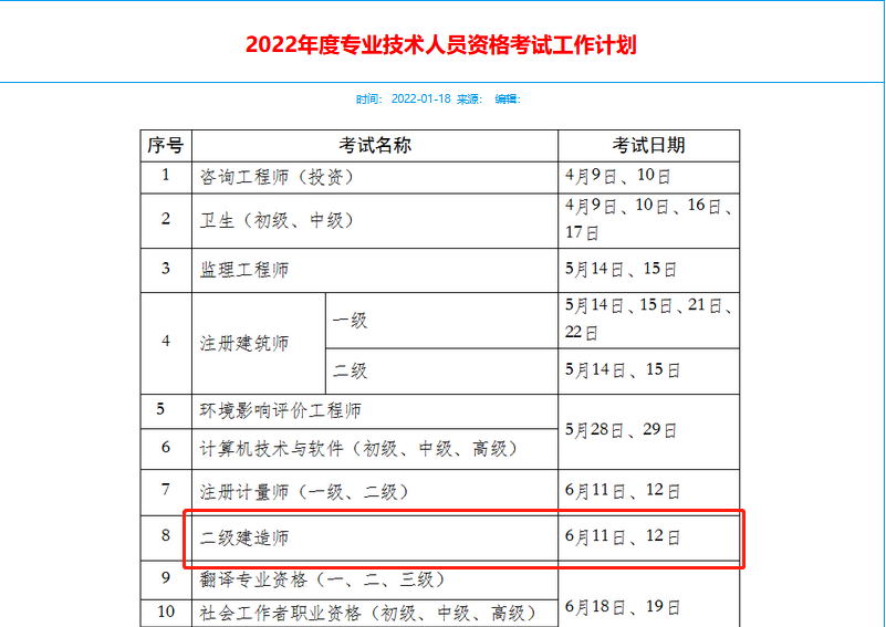 寧夏人事考試中心公布二級建造師考試時間,二建考試時間為6月11日、12日。