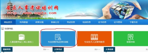 2、若審核未通過(guò),需登陸安慶人事考試培訓(xùn)網(wǎng),選擇“專業(yè)技術(shù)資格考試資料審核”板塊。