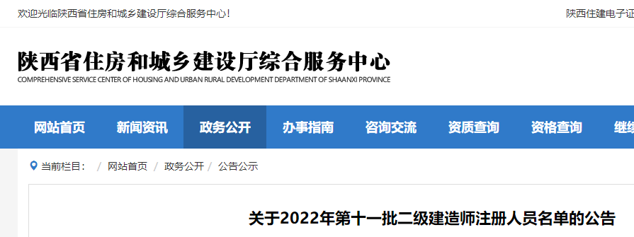 陜西關(guān)于2022年第十一批二級(jí)建造師注冊(cè)人員名單的公告