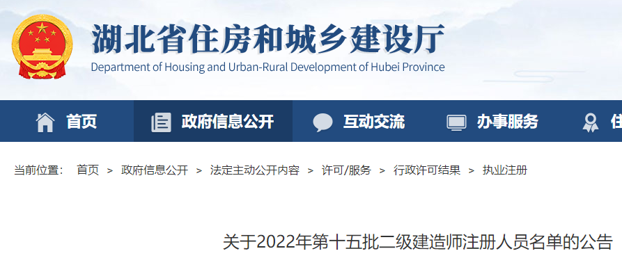 湖北關(guān)于2022年第十五批二級建造師注冊人員名單的公告