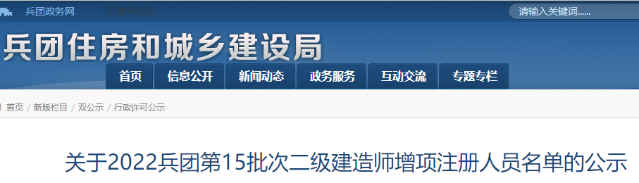 關(guān)于2022兵團(tuán)第15批次二級(jí)建造師增項(xiàng)注冊(cè)人員名單的公示
