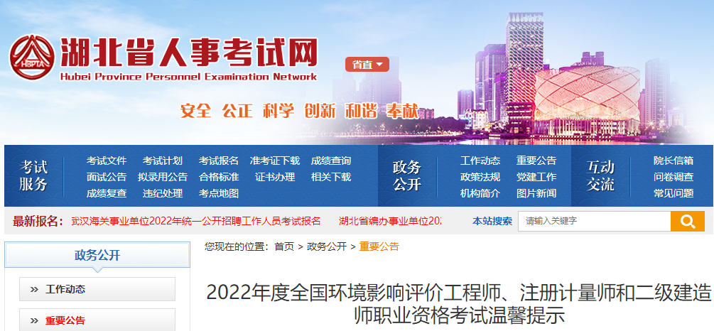 全國環(huán)境影響評價(jià)工程師職業(yè)資格考試將于5月28日、29日舉行,一二級注冊計(jì)量師、二級建造師職業(yè)資格考試將于6月11日、12日舉行。根據(jù)當(dāng)前湖北省新冠疫情防控要求,為方便廣大考生順利參考,特溫馨提示如下: