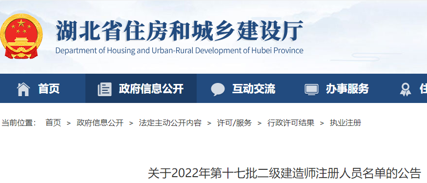 湖北關(guān)于2022年第十七批二級(jí)建造師注冊(cè)人員名單的公告