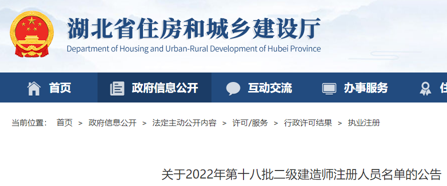 湖北關(guān)于2022年第十八批二級建造師注冊人員名單的公告