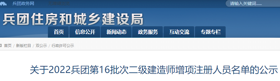 關(guān)于2022兵團(tuán)第16批次二級(jí)建造師增項(xiàng)注冊(cè)人員名單的公示