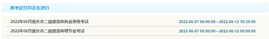 重慶2022年二級(jí)建造師準(zhǔn)考證打印入口: