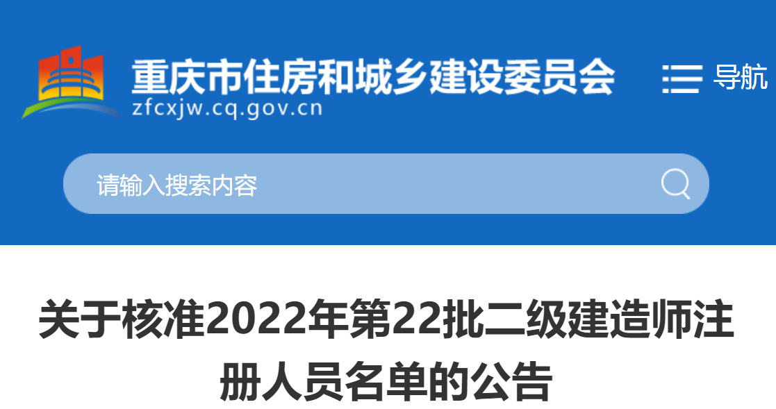 重慶關(guān)于核準(zhǔn)2022年第22批二級建造師注冊人員名單的公告