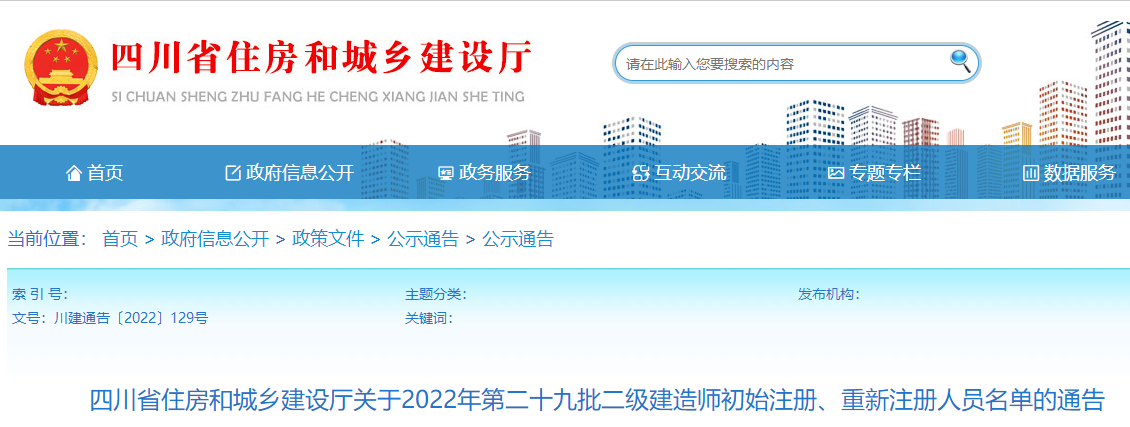 四川2022年第二十九批二級建造師初始注冊、重新注冊人員名單的通告