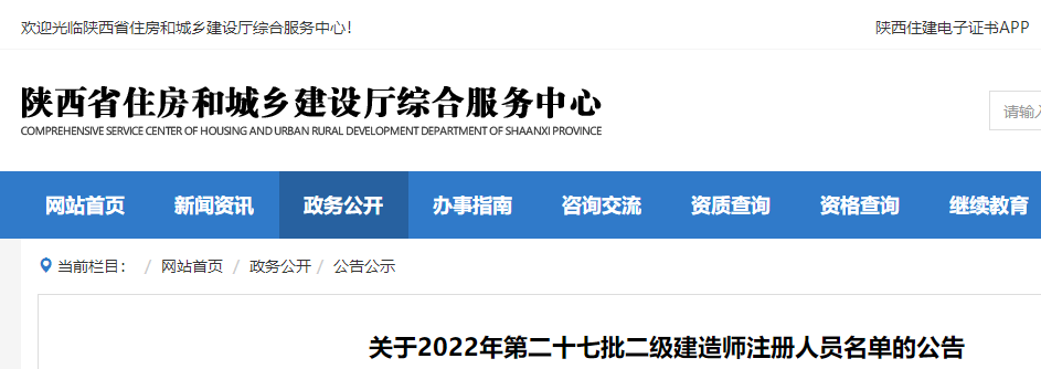 陜西關(guān)于2022年第二十七批二級建造師注冊人員名單的公告