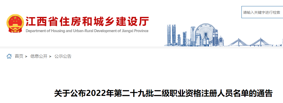 江西公布2022年第二十九批二級建造師注冊人員名單的通告