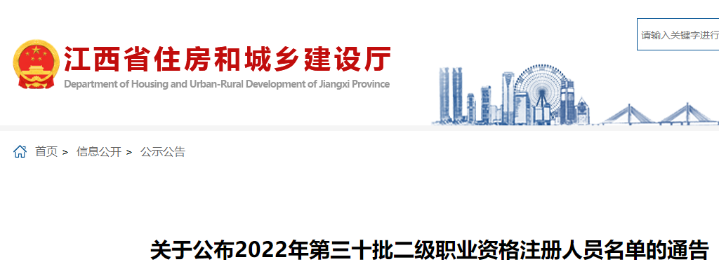江西公布2022年第三十批二級建造師職業(yè)資格注冊人員名單的通告