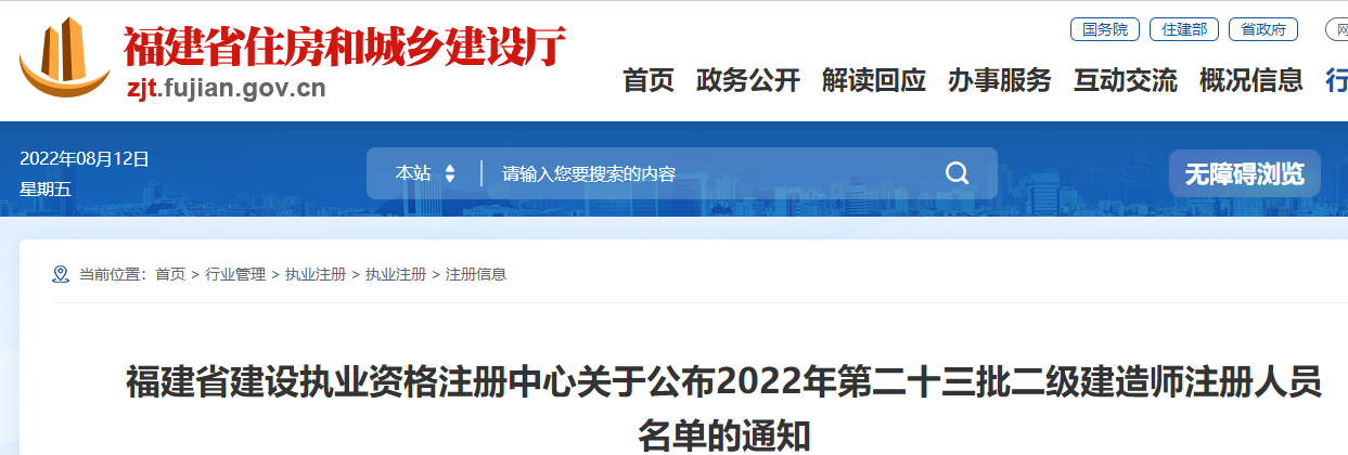 福建省公布2022年第二十三批二級(jí)建造師注冊(cè)人員名單的通知