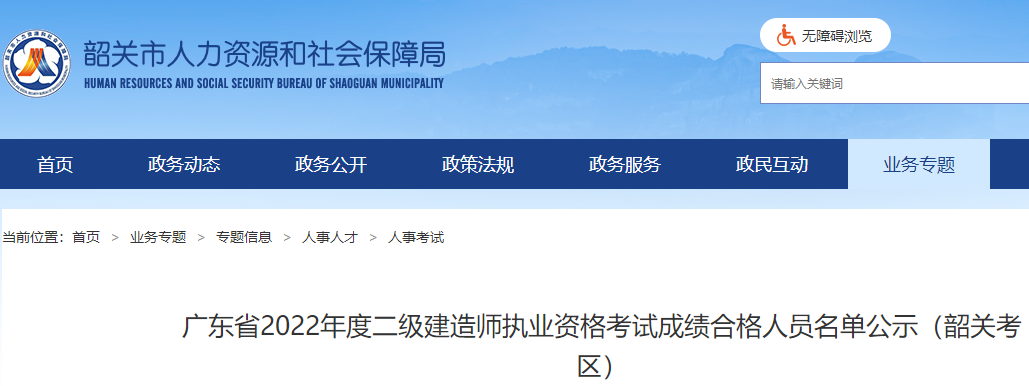 廣東2022年二級建造師執(zhí)業(yè)資格考試成績合格人員名單公示(韶關考區(qū))