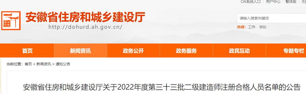 安徽關(guān)于2022年第三十三批二級建造師注冊合格人員名單的公告