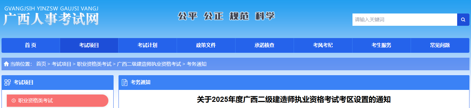 關于2025年度廣西二級建造師執(zhí)業(yè)資格考試考區(qū)設置的通知