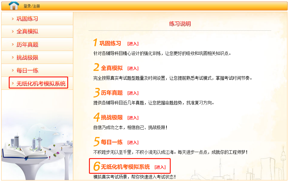 第二步:點(diǎn)擊進(jìn)入或者點(diǎn)擊無(wú)紙化機(jī)考模擬系統(tǒng),但要注意未登錄的小伙伴需先登錄才能進(jìn)入
