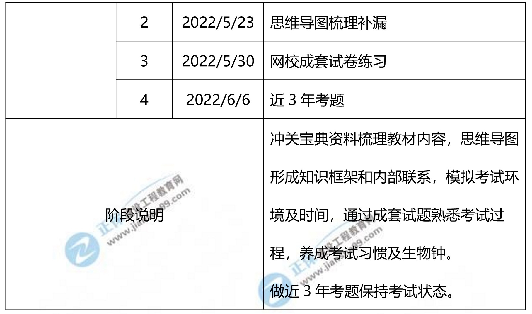 1、整體進(jìn)度說明:本計(jì)劃表從2022年2月15日開始執(zhí)行,計(jì)劃于2022年6月10日結(jié)束,共計(jì)17周;其中:提高學(xué)習(xí)階段安排7周,習(xí)題強(qiáng)化階段安排6周,總結(jié)沖刺階段安排4周。學(xué)員可根據(jù)本表的提示,結(jié)合自己的工作,學(xué)習(xí)情況進(jìn)行細(xì)化,并按網(wǎng)校要求完成聽課、做題的學(xué)習(xí)任務(wù),基本可滿足考試需要。