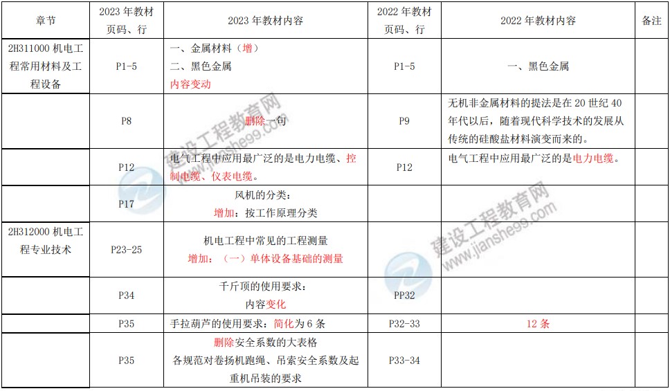 2023年二級建造師機電實務(wù)教材變動情況說明