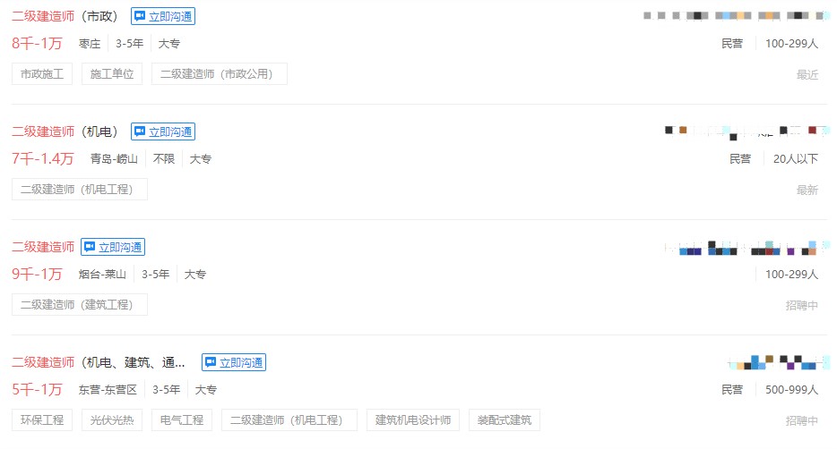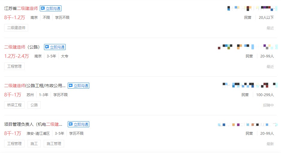 很多考生比較關(guān)注考取二級(jí)建造師證書(shū)后能拿到多少工資,小編在某招聘網(wǎng)站上搜索了幾個(gè)城市的二級(jí)建造師招聘信息,來(lái)給大家做個(gè)參考。