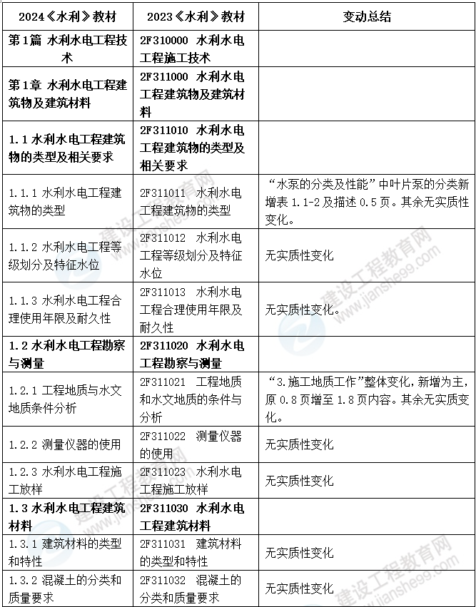 2024年二級建造師水利實(shí)務(wù)教材變動情況表預(yù)覽