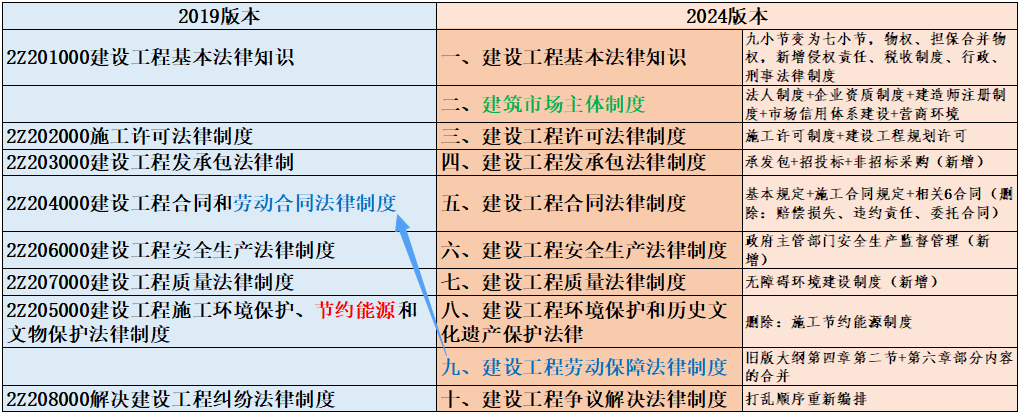 舊版大綱原為八章36節(jié)內(nèi)容,24年大綱改為十章44節(jié)內(nèi)容。24版大綱章節(jié)內(nèi)容框架進(jìn)行了整合梳理并重新分配章節(jié),整體內(nèi)容都有所變動(dòng)。具體變化詳見(jiàn)表格:
