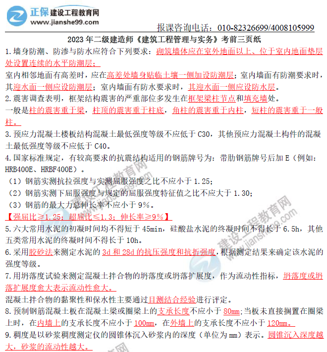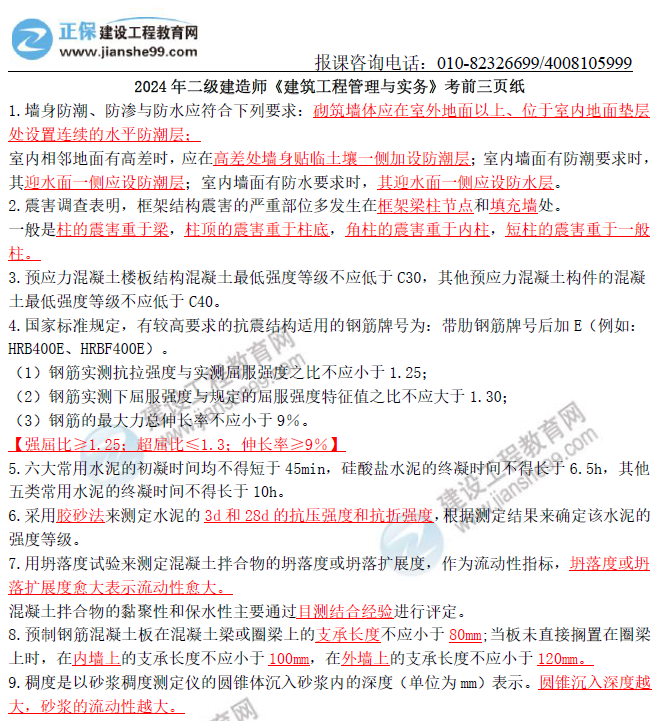 2024年二級(jí)建造師考生朋友們注意啦,二建考試正式進(jìn)入倒計(jì)時(shí),建設(shè)工程教育網(wǎng)教研團(tuán)隊(duì)的老師們?cè)谧詈蟮臎_刺階段為大家準(zhǔn)備了了考試主攻神器【考前三頁紙】,大家進(jìn)群免費(fèi)領(lǐng)?。。?!