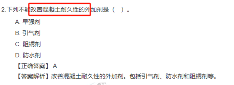 考點詳解:(1)改善混凝土拌合物流變性能的外加劑。包括各種減水劑、引氣劑和泵送劑等。