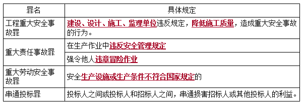 『答案解析』本題考查的是建設工程刑事責任的種類及承擔方式。重大責任事故罪的具體規(guī)定:強令作業(yè)人員違章冒險作業(yè);在生產(chǎn)作業(yè)中違反安全管理規(guī)定。