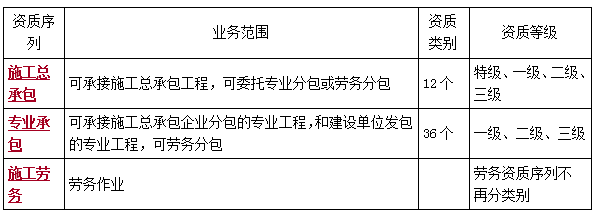 施工企業(yè)的資質(zhì)序列、類別和等級(jí)