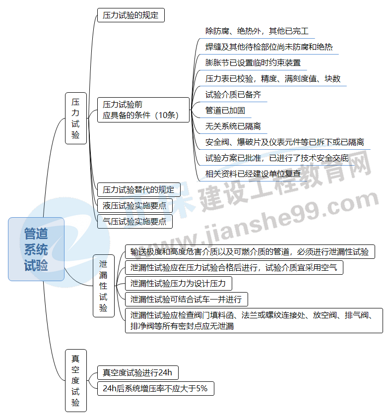 二級(jí)建造師考試《機(jī)電工程管理與實(shí)務(wù)》管道系統(tǒng)試驗(yàn)考點(diǎn),歷年分值在1-2分左右,考情分析+視頻講解+高清思維導(dǎo)圖+5題幫你輕松拿下此考點(diǎn),歡迎收藏分享。