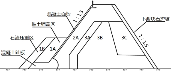 問題:指出圖中2A、3A、3B、3C所代表的壩體材料分區(qū)名稱?