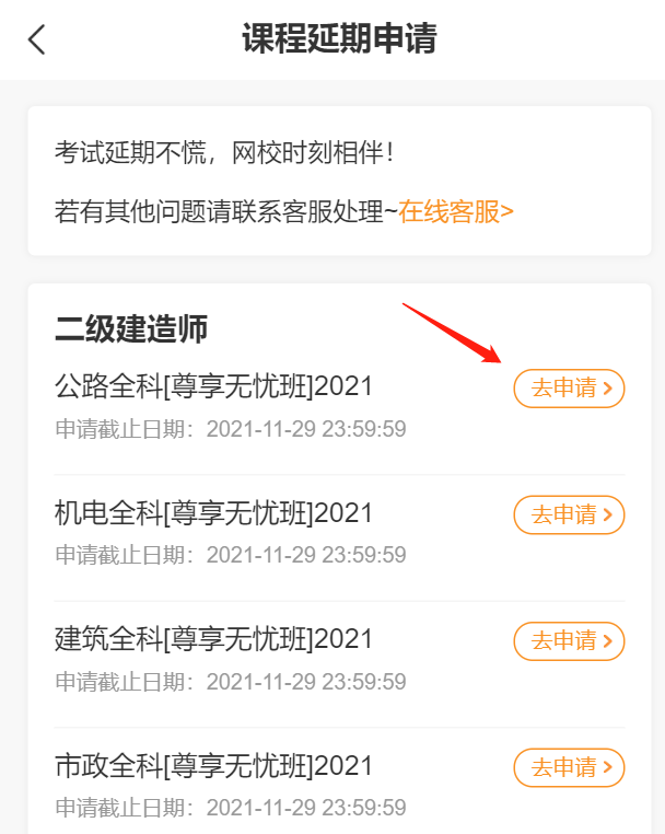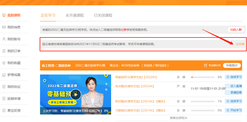 - · 注意了!??嫉貐^(qū)二建學(xué)員可申請(qǐng)課程延期