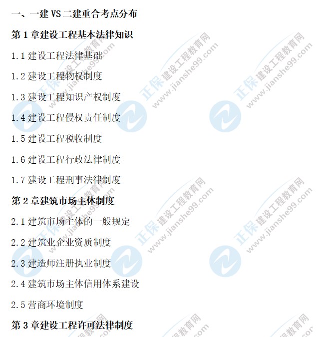 一建VS二建重合考點分布-建設(shè)工程法規(guī)及相關(guān)知識