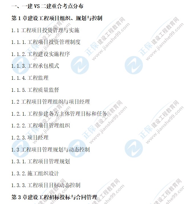 一建VS二建重合考點(diǎn)分布-建設(shè)工程項(xiàng)目管理