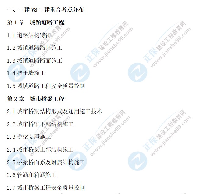 一建VS二建重合考點(diǎn)分布-市政工程管理與實(shí)務(wù)