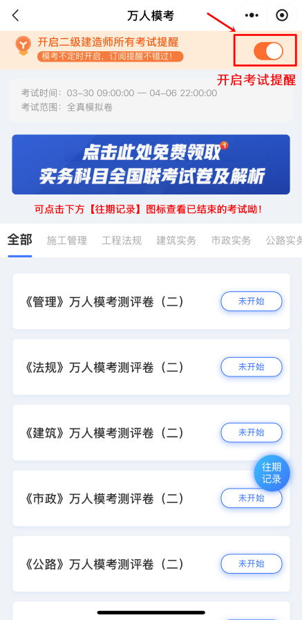 建議開通考試提醒,避免錯過二級建造師考試重要時間節(jié)點。