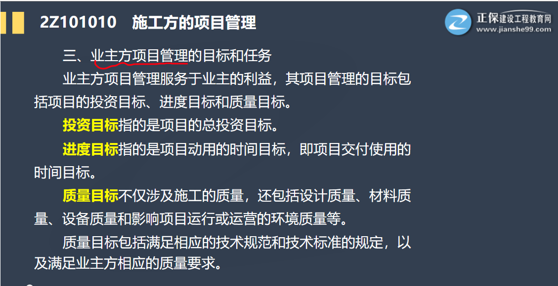 【考點精講】二建施工管理:業(yè)主方項目管理的目標和任務(wù)