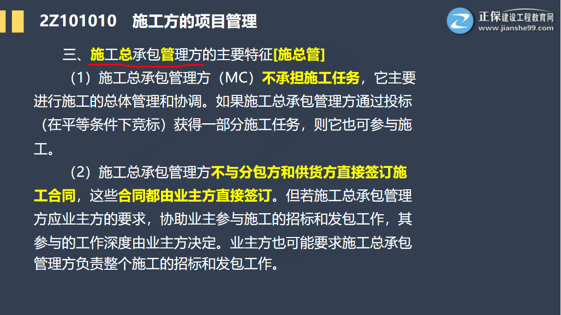 施工總承包管理方的主要特征【施總管】