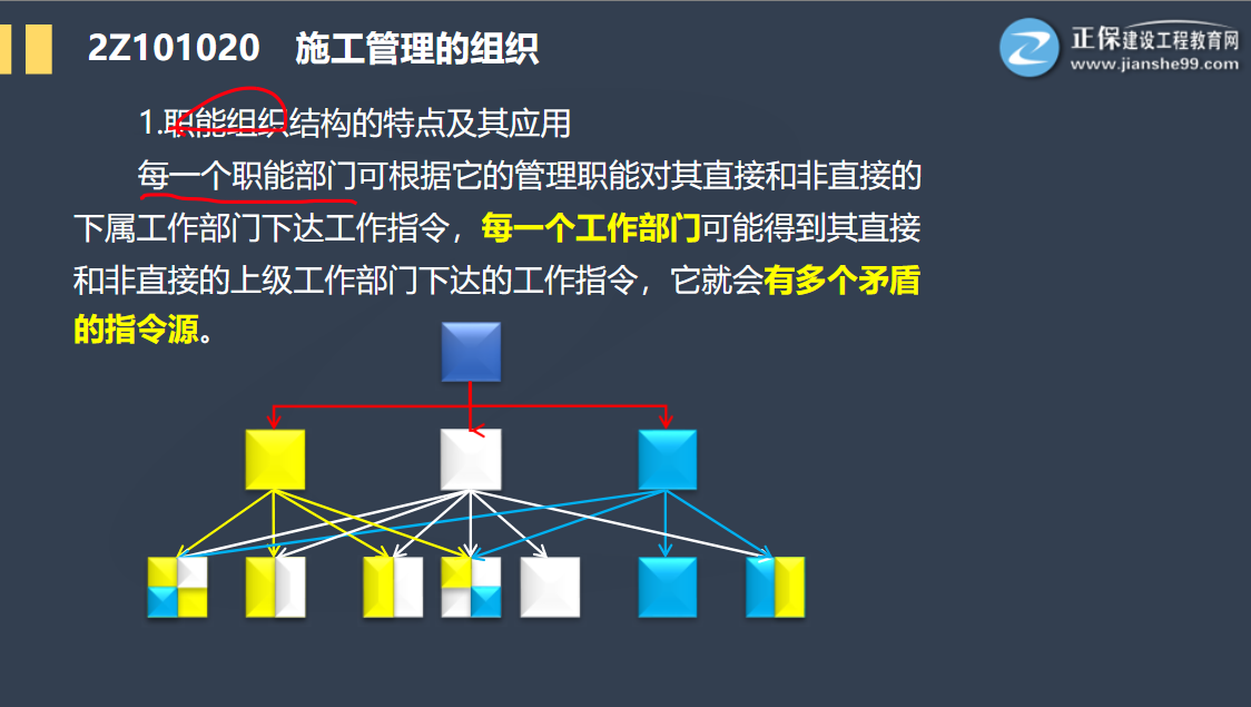 每一個職能部門可根據(jù)它的管理職能對其直接和非直接的下屬工作部門下達工作指令,每一個工作部門可能得到其直接和非直接的上級工作部門下達的工作指令,它就會有多個矛盾的指令源。