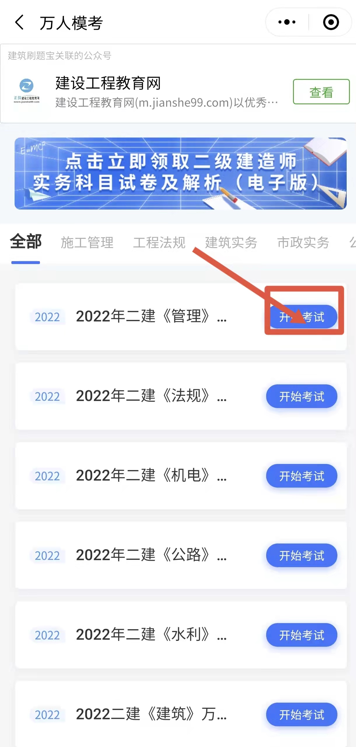 進入2022年二級建造師模考大賽的操作步驟