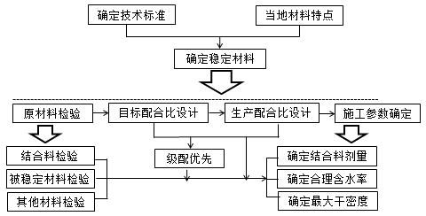 施工參數(shù)確定 | ①確定施工中結(jié)合料的劑量。 ②確定施工合理含水率及最大干密度。 ③驗(yàn)證混合料強(qiáng)度技術(shù)指標(biāo)。 | |