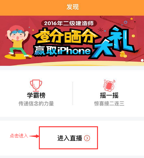 二、移動端看直播可以直接打開移動課堂4.0版本,進入移動課堂首頁后點擊“發(fā)現(xiàn)”,進入發(fā)現(xiàn)界面即可看到直播功能,進入后等待開播即可。(需要登錄,如沒賬號的可先申請賬戶。)
