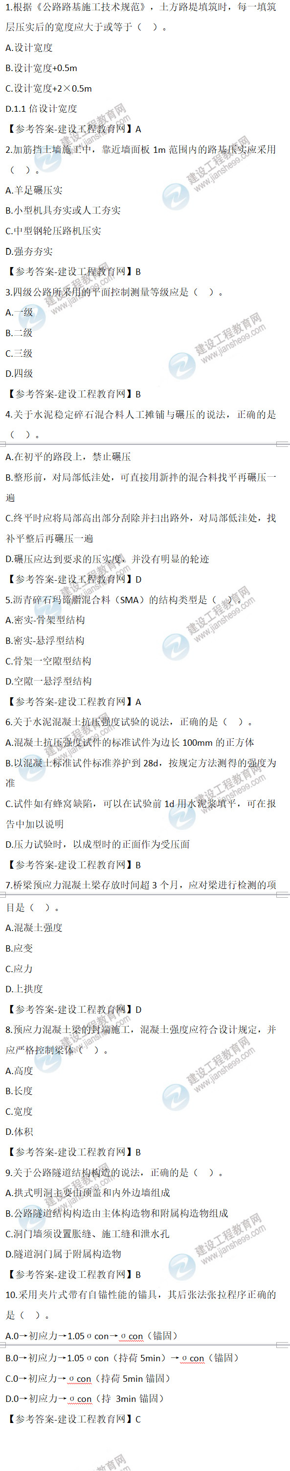 2022年二級建造師公路實務(wù)試題及答案1-10(12月補考)