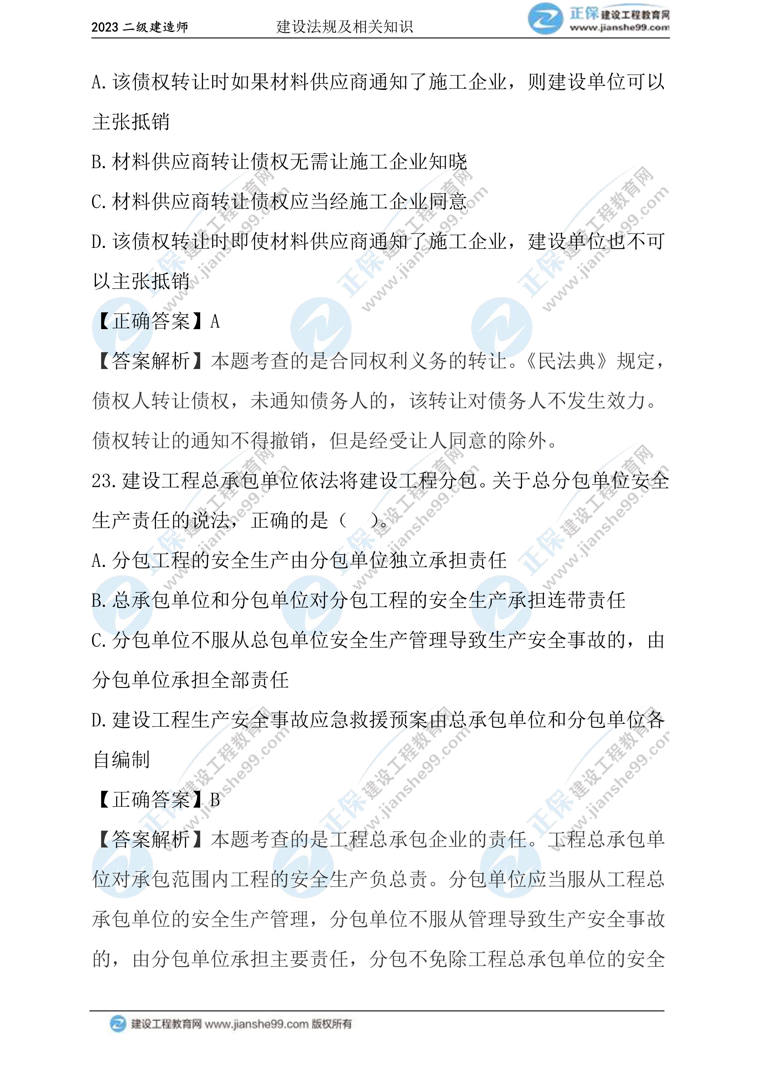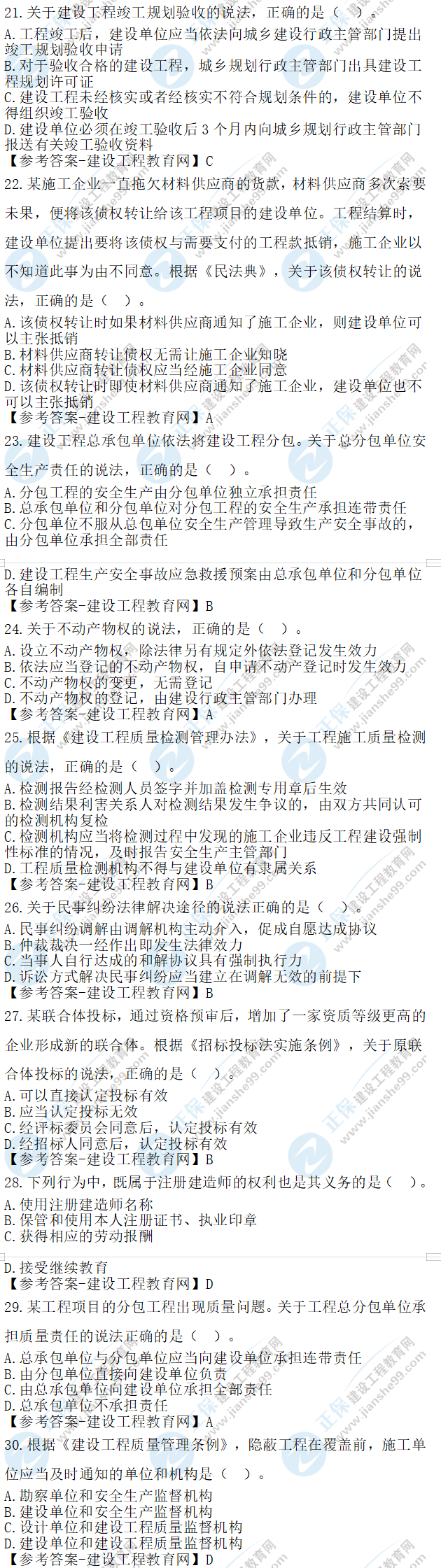 2023年二級建造師工程法規(guī)真題及答案21-30