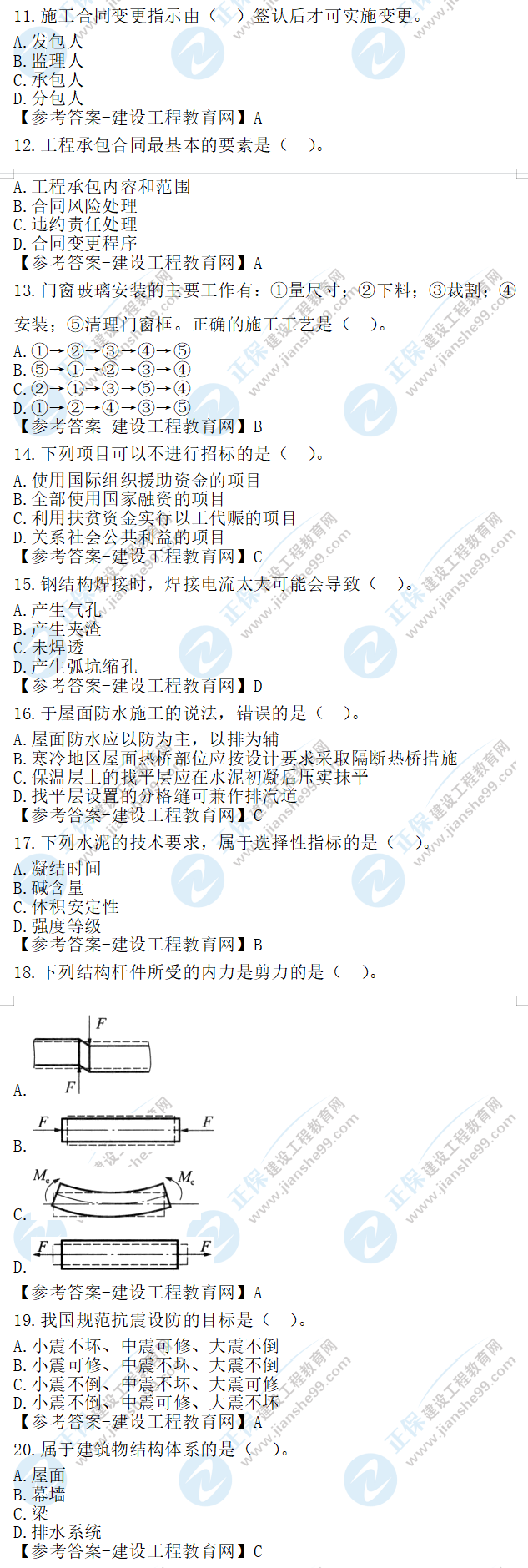 2023年二級建造師建筑實務真題及答案11-20