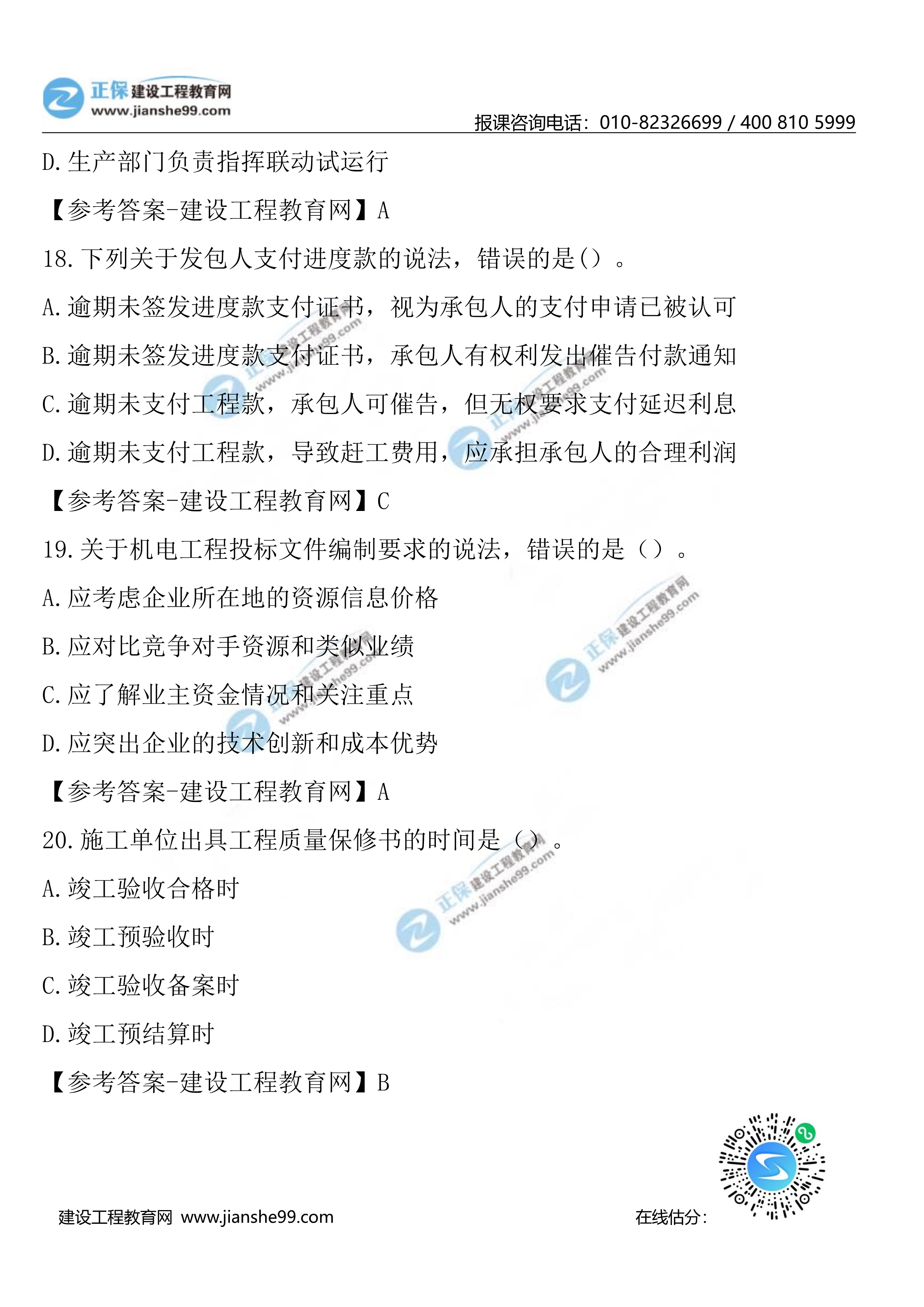 2023年二級(jí)建造師考試于6月3日、4日舉行,考試過(guò)后,廣大考生最關(guān)心的問(wèn)題莫過(guò)于2023年二級(jí)建造師機(jī)電實(shí)務(wù)真題及答案,建設(shè)工程教育網(wǎng)考后將會(huì)根據(jù)考生反饋,及時(shí)匯總2023年二級(jí)建造師機(jī)電工程管理與實(shí)務(wù)真題及答案分享給大家。以下為2023年二級(jí)建造師機(jī)電工程管理與實(shí)務(wù)11-20題真題及答案,希望能為廣大二建考生朋友帶來(lái)幫助。